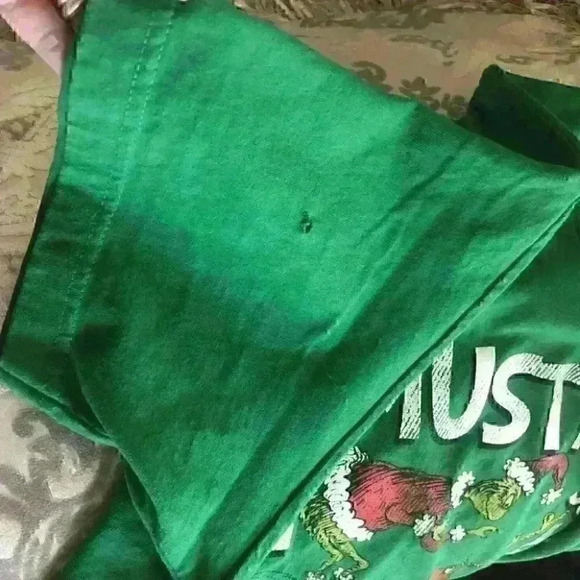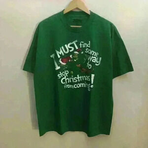 Dr. Seuss graphic novelty t-shirt "I must find some way to stop Christmas from coming" Unisex 100% cotton Has a hole on right sleeves but still in great preowned condition Size XL Shoulder 22.5" Pit to pit 23" Length 30"
