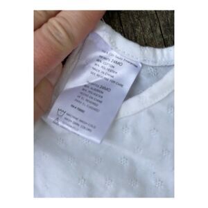 Size 24 Month on tag. 65% Cotton, 35 Polyester. Short puff sleeves, Knit textured fabric, rear neck button closure. No stains, holes or tears. Pet and smoke free home.