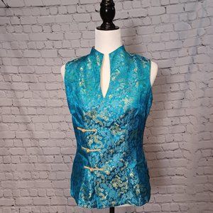 Dragon Brocade Turquoise & Gold Vietnamese Blouse Medium