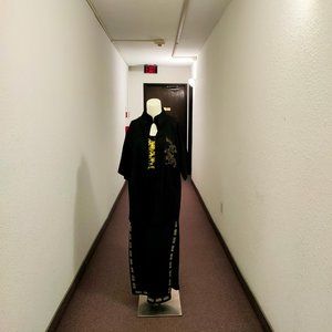 This stunning Dragon printed cheongsam for sale is a beautiful fusion of traditional Chinese design and modern fashion. The soft black fabric is adorned with intricate golden dragon patterns, symbolizing power and good fortune in Chinese culture. The dress is tailored in the classic cheongsam style, with a high mandarin collar and a form-fitting silhouette that flatters the figure. Made from high-quality materials, this cheongsam is perfect for any formal occasion or cultural event, and is sure to turn heads with its unique and bold design. Both the lovely cheongsam and chinese jacket are a set. Feel free to contact me, should you have any questions regarding the listings.