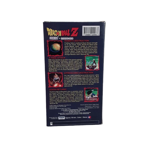 Dragonball Z Frieza Eleventh Hour VHS VCR Video Tape VG Anime Vintage 1999. Join the action-packed adventure with this classic anime film featuring Frieza in a battle for the ages. This NTSC format VHS tape is a must-have for any fan of the Dragonball Z series. Add this rare gem to your collection today and relive the excitement of the eleventh hour showdown.