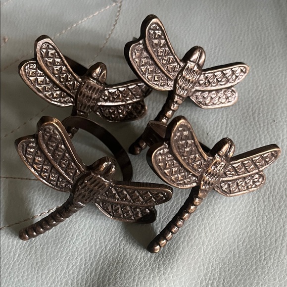 Set of 4 dragonfly napkin rings in a bronze finish. Perfect for adding a touch of elegance to your table setting.