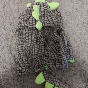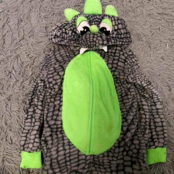 Size 3 Green and Gray monster/dragon pajamas or costume Tail is velcro and can detach
