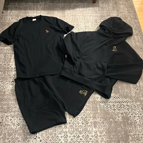 Drake set with a T-shirt sweatshorts hoodie and have been worn a couple of times we could adjust the price on it and with no tags