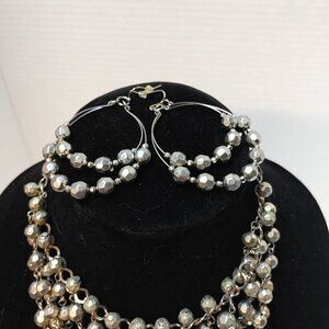Dramatic style Jewerly set 6 Strand Chocker Queen Silver Bead Necklace Earrings