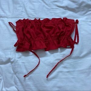 • handmade red drape top with an open back