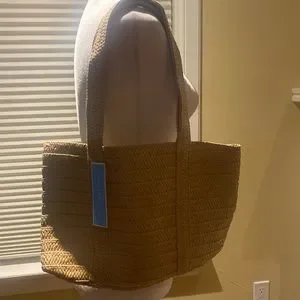 Vacation in a bag. We love this woven top-handle tote. It's the perfect warm-weather accessory for beach days or spring and summer brunches.