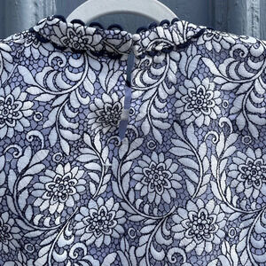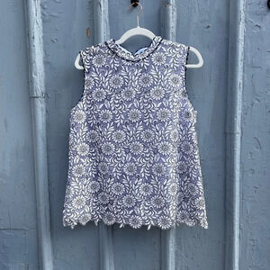 Draper James (Reese Witherspoon) Lace Overlay Magnolia Blossom Sleeveless Blouse. Rear button closure.