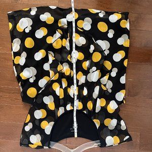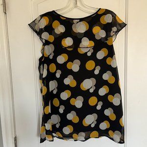 Drapey black blouse with white and yellow pattern