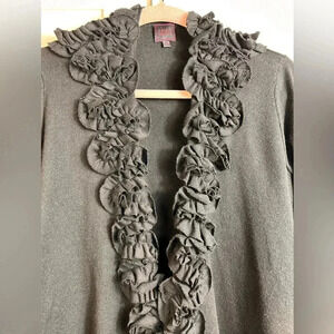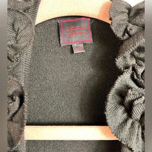 Open Cardigan, with ruffle flower details, true black (see photo of the back), Excellent preowned condition, Large