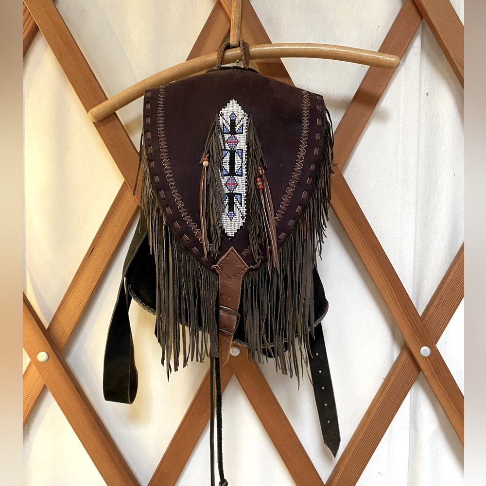 Leather Backpack Handmade with beautiful beadwork. No brand and beautiful quality one of a kind unique style great for school, everyday, or music festivals!