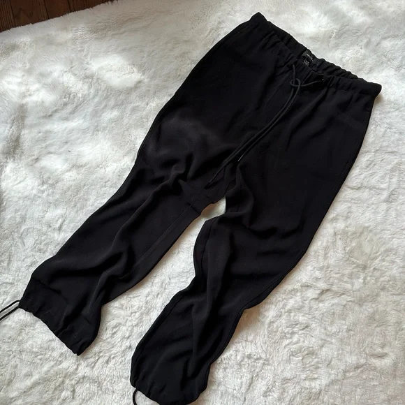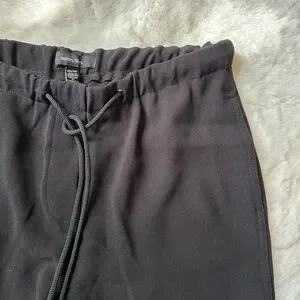 These sleek black pants offer comfort and style with a convenient drawstring waist. Perfect for casual outings or relaxed days at home.