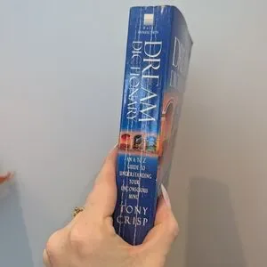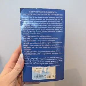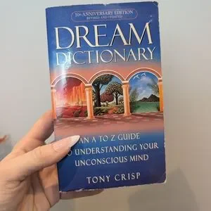 Dream Dictionary book with a colorful cover. Features a scenic illustration.