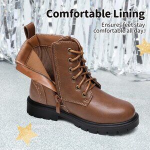 Dream Pairs Boys Girls Brown Side Zipper Combat Thermoplastic Elastomers Boots