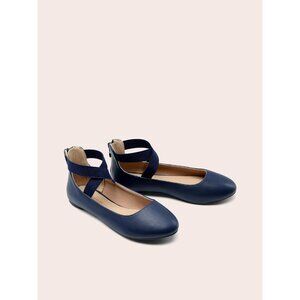 Dream Pairs Women Navy-puFaux Suede Flats Comfortable Elastic Ankle Straps Shoes