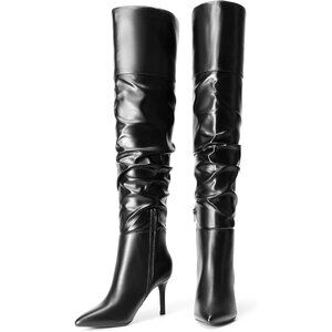 Dream Pairs Women's Black Over The Knee Thigh High Sexy High Heels Slouch Boots