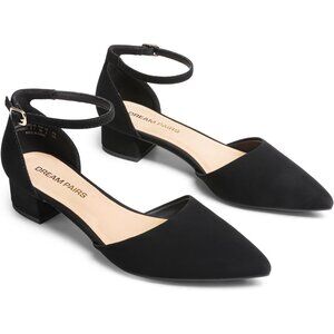 Dream Pairs Women's Black-nubuck Faux Leather Closed Pointed Toe Low Heel Pumps