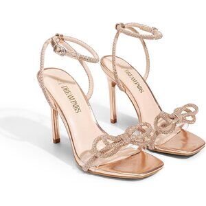 Dream Pairs Women's Gold Double Bowknots Crystal Slingback Square Toe Sandals
