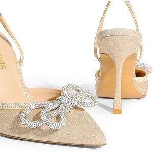 Sparkly Bow: Shine like a star with these decorative shimmering bow high-heel pumps that are sure to get you noticed