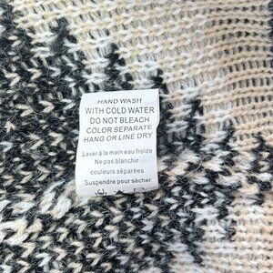 Beautiful Dreamers longline open-front women’s cardigan. Features a grey, beige and cream Southwest-inspired pattern with a subtle western-boho look. The knit is comfortable and non-itchy, perfect for layering through fall and winter. Relaxed fit, marked M/L and true to size.