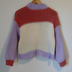 Dreamers Chunky Knit Sweater Colourblock Purple Pink Cream Mock Neck Size Small