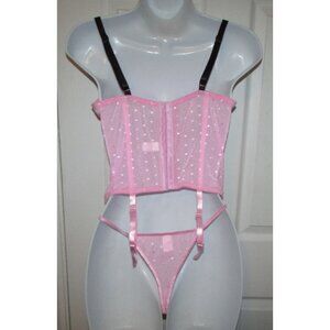 Dreamgirl Pink Mesh 3 Pc Corset Set - NEW