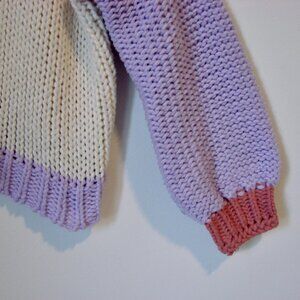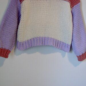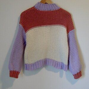 Dreams Chunky Knit Sweater Colourblock Purple Pink Cream Mock Neck ~ Size Small~ 100% Polyester ~ Dreams by Debut