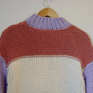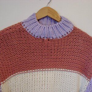 Dreams Chunky Knit Sweater Colourblock Purple Pink Cream Mock Neck Size Small
