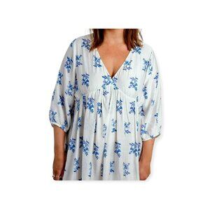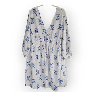 Dreamy Lightweight White/Blue Floral Viscose Babydoll Dress H&M XXL
