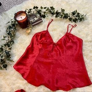 Dreamy delicate red set with a simple rose detailing on the neckline.