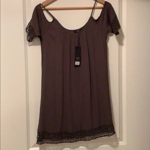 New with tags, beautiful olive green with lace detailing on sleeves and skirt. Wear straps up on shoulders or down as shown on model. A nice light material for flowy feel. Perfect colour for fall. Size small, ONLY brand.