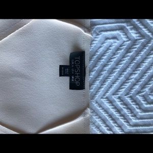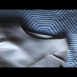 Very elegant mini dress. Functional zipper up front. Stylish unfinished hems. Cream color. Never worn. Dust marks on left hip area. Can likely be easily removed with damp cloth- I didn’t try yet.