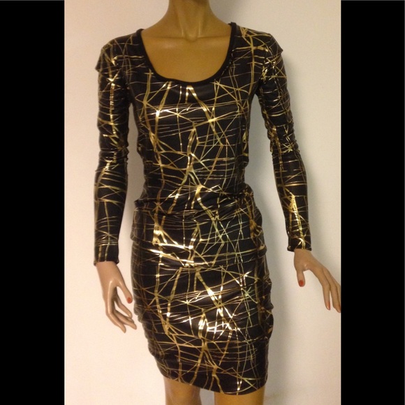 Stretch knit gold and black long sleeve (available in 10 and 12)