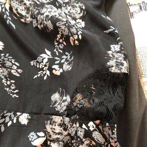New without tags cute almost knee length summer dress. Black lace detail around the waist and top front and back. Tag says lg but it fits more like a 8 or small med.
