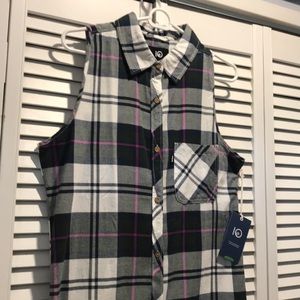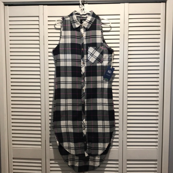 This cute plaid shirtdress looks great on its own or with jeans. The colour on the tag says moss. Never worn.