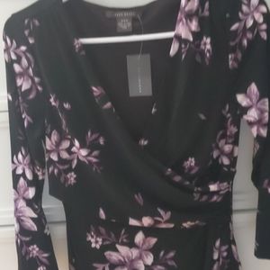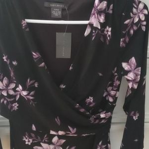 Brand new fitted small size dress black with purple lavender to white flowers.
