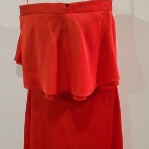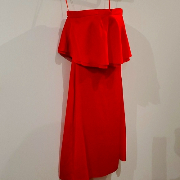 Red strapless below knee