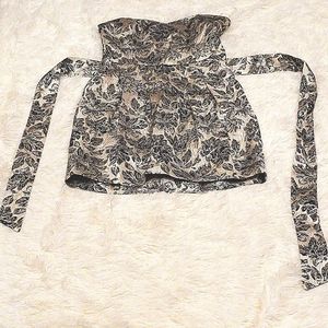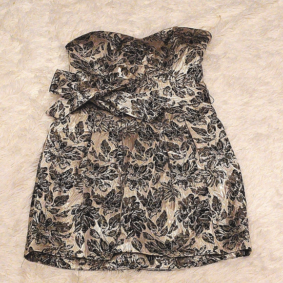Mini tube dress with sash. Black floral print on a soft white gold backing, makes for a stunning dress.