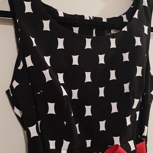Super cute fitted black and white dress with bright bow!