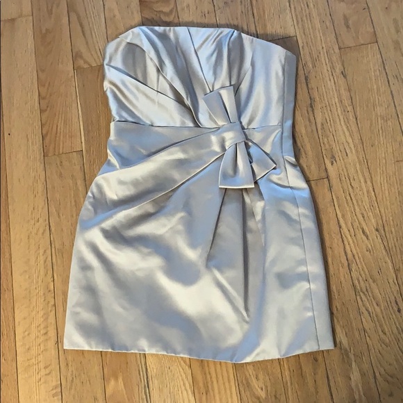 Gold formal dress. Strapless. Very small stain on the top of the front.
