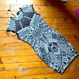 RVN Black and white mid thigh Bandage dress