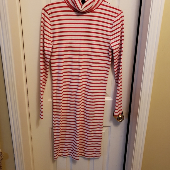 Red and white candy stripe, turtle neck dress