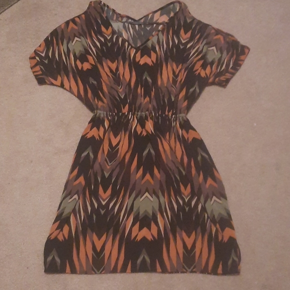 Autumn toned dress with open-shoulder sleeves Note small imperfection in last picture D1