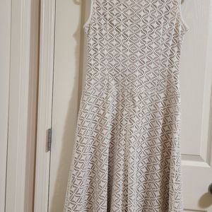 Sleeveless, midi dress in a beige cream color,a lace material
