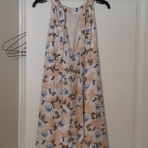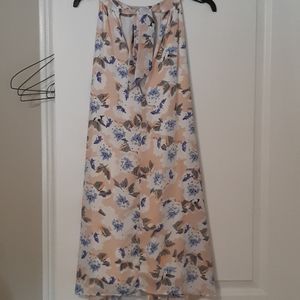 Cute summer dress. Halter style ties at back. V opening at back. Lightweight fabric and it has a lining. Above knee length