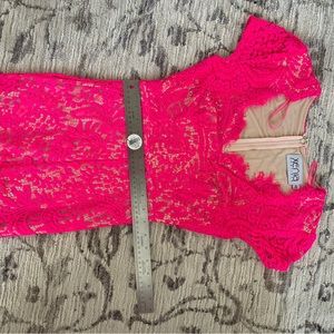 Fits VERY SMALL ! more like a 0-2 . NOT a 6 !!! Colour is more of a hot pink not just a bright pink as shown in these photos ( will try to upload more ) .