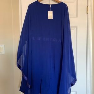 Woman's chiffon Marine Blue dress with see-through wings. mid-calf length, size 14, Three Seasons