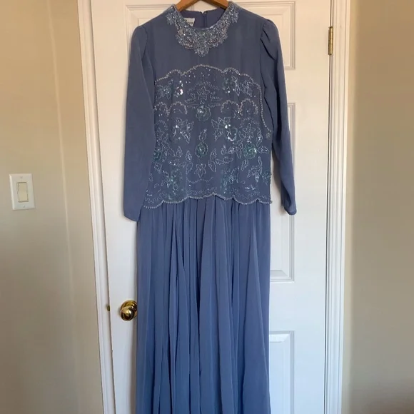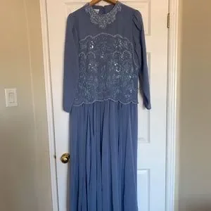 Mother-of-the-bride or formal crepe dress with sequins, JACK BRYAN, Size 15, mid-calf, long sleeves