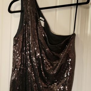 Brown off shoulder sequence dress