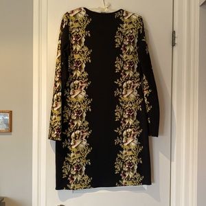 Lack knee length dress with green floral pattern. Size medium long sleeves. Spandex very firm fitting.